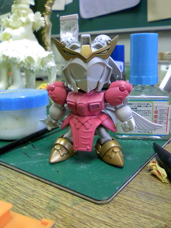 ガーベラというのはいうまでも無くU.C0083のガンダム試作4号機のことで、ガンダムになり損なってガーベラ・テトラになったアイツのことです。背部の大型タンクとロングレンジビームライフルが特徴の機体ですが、このSDではタンクがリボン(弓)に、ライフルが槍になっています。
